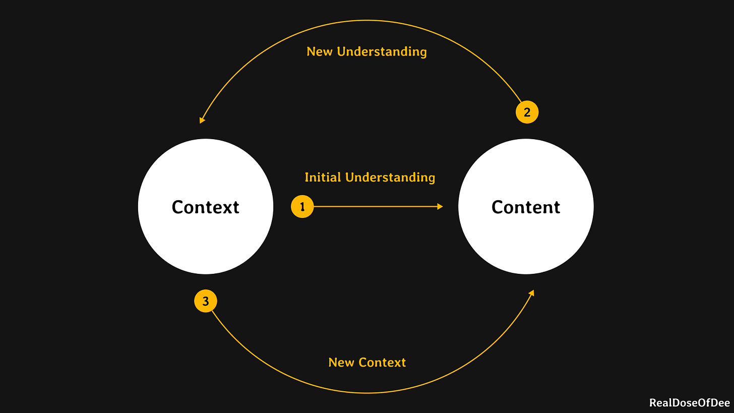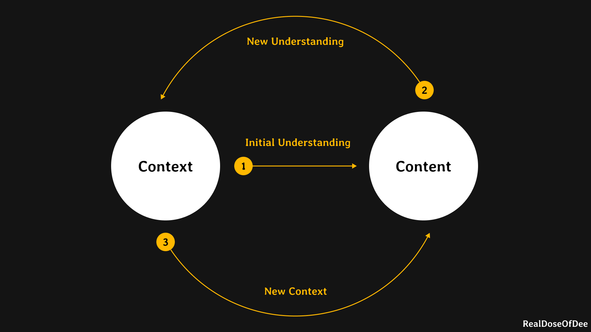 Your current state of understanding (context) informs how you approach any new content, and what you extract from that content;
