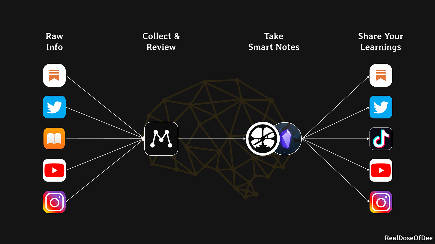 As mentioned above, we're aiming to transform information into knowledge; where we can readily retrieve relevant knowledge when the need arises (ex. writing an article/creating content, applying the knowledge, problem-solving, intentional practice, etc).